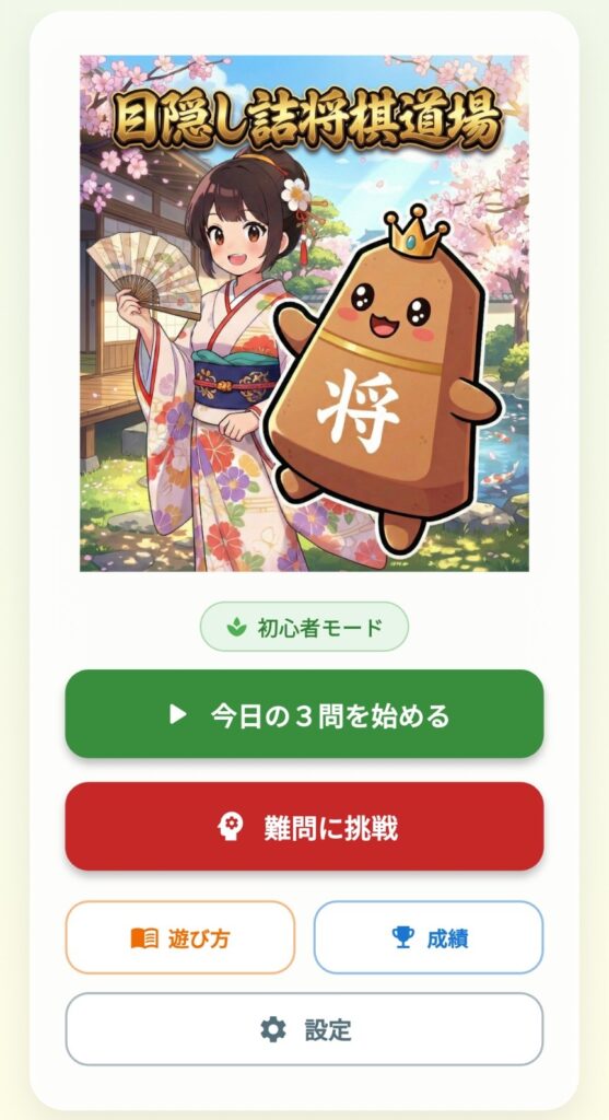 目隠し詰将棋に不慣れな方は初心者モードから始めて、まずは目隠し詰将棋に慣れましょう。