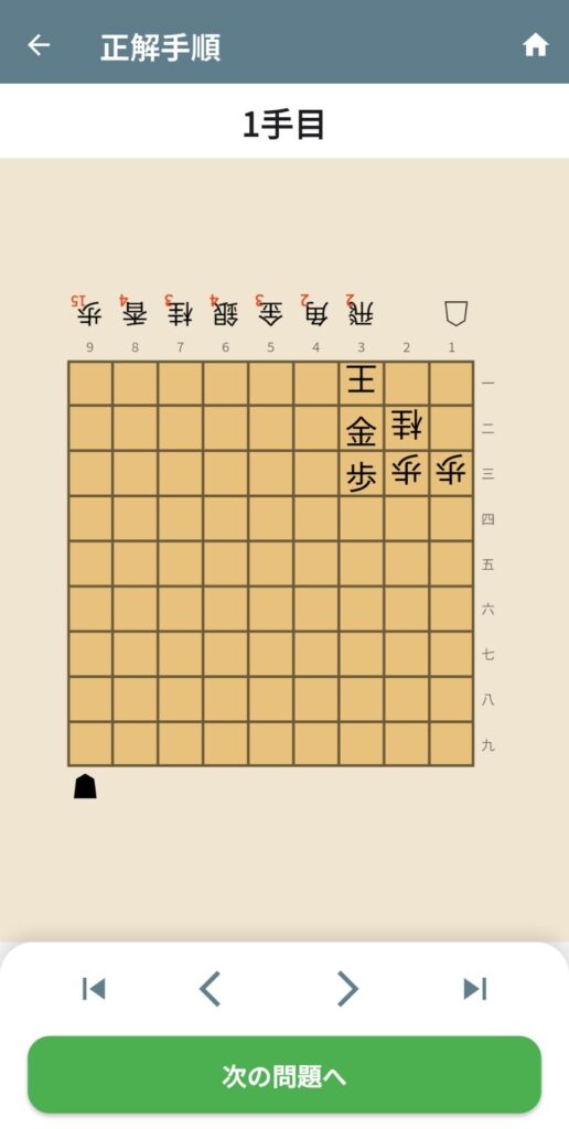 正誤の判定後、正解手順を盤面で確認することが出来ます。