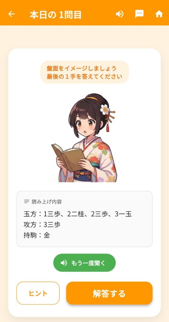 音声に集中し、脳内で駒を配置して、頭の中だけで詰将棋を解きましょう。